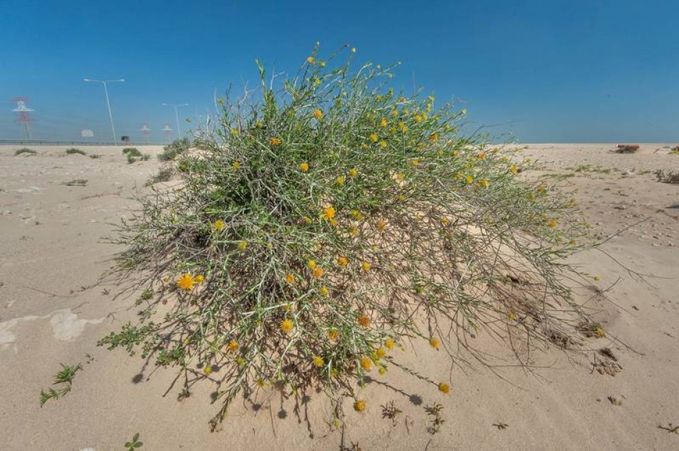 العرفج هي أيضا الزهرة الوطنية للكويت. وهي شجيرة كثيفة يبلغ ارتفاعها حوالي 80 سم. الأوراق صغيرة وضيقة وفي أواخر الربيع تبدأ في الإزهار أبريل-مايو عندما تسود درجة الحرارة الباردة ، ينتج الأوراق بسرعة بعد هطول الأمطار. في غضون بضعة أشهر ، تصبح الفروع والأوراق حديثة التكوين قوية ،ويتم إنتاج الزهور الصفراء ، وتجذب الحشرات والطيور. في الصيف ، عندما تجف الأرض ، تتساقط الأوراق وتصبح الفروع عارية ومكسوة بالألياف الحية. في أوقات الإجهاد ، قد تكون هذه التغييرات مهمة في زيادة فرصة البقاء على قيد الحياة ، والماء والمواد المخزنة في السيقان للبقاء على قيد الحياة من خلال السماح لها بامتلاك القليل من البراعم الخاملة. عندما تتحسن الظروف ، يتم نقل الاحتياطيات إلى براعم تسمح بنمو جديد.